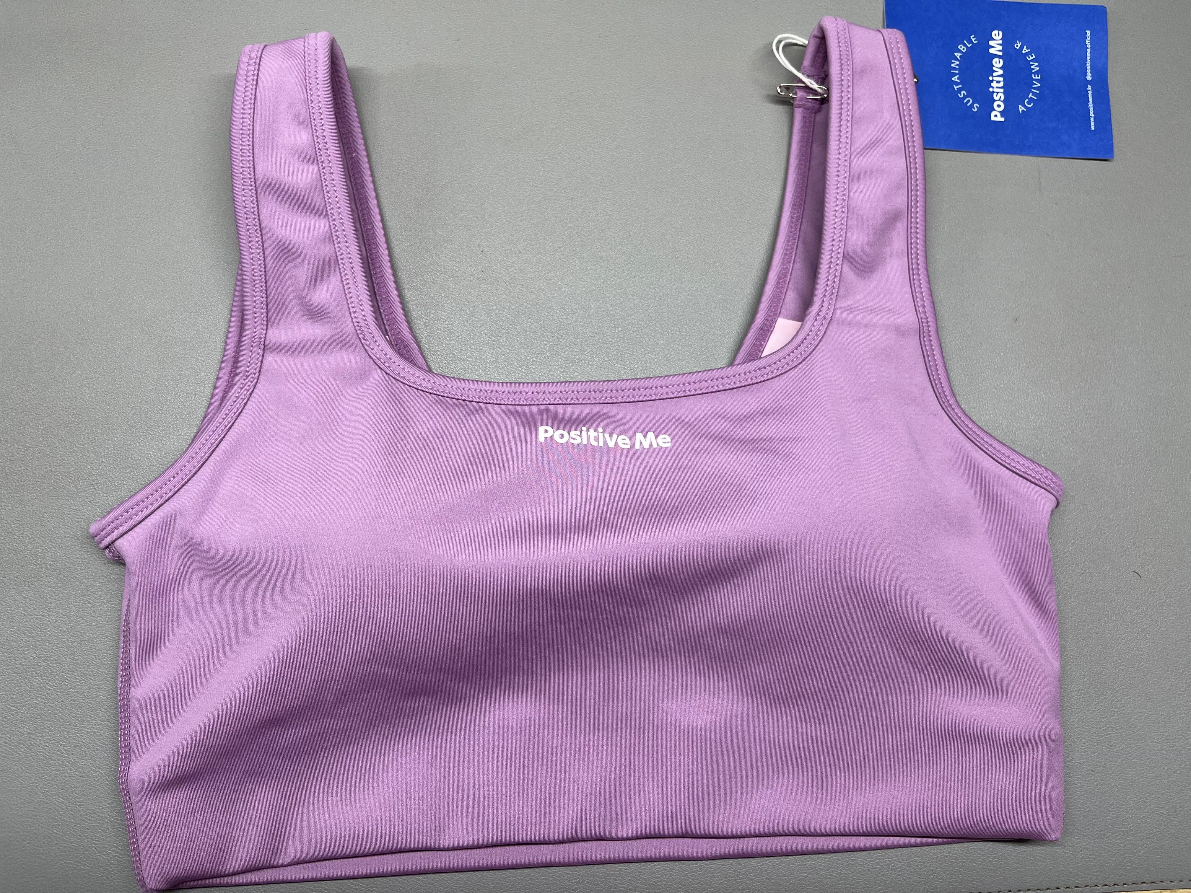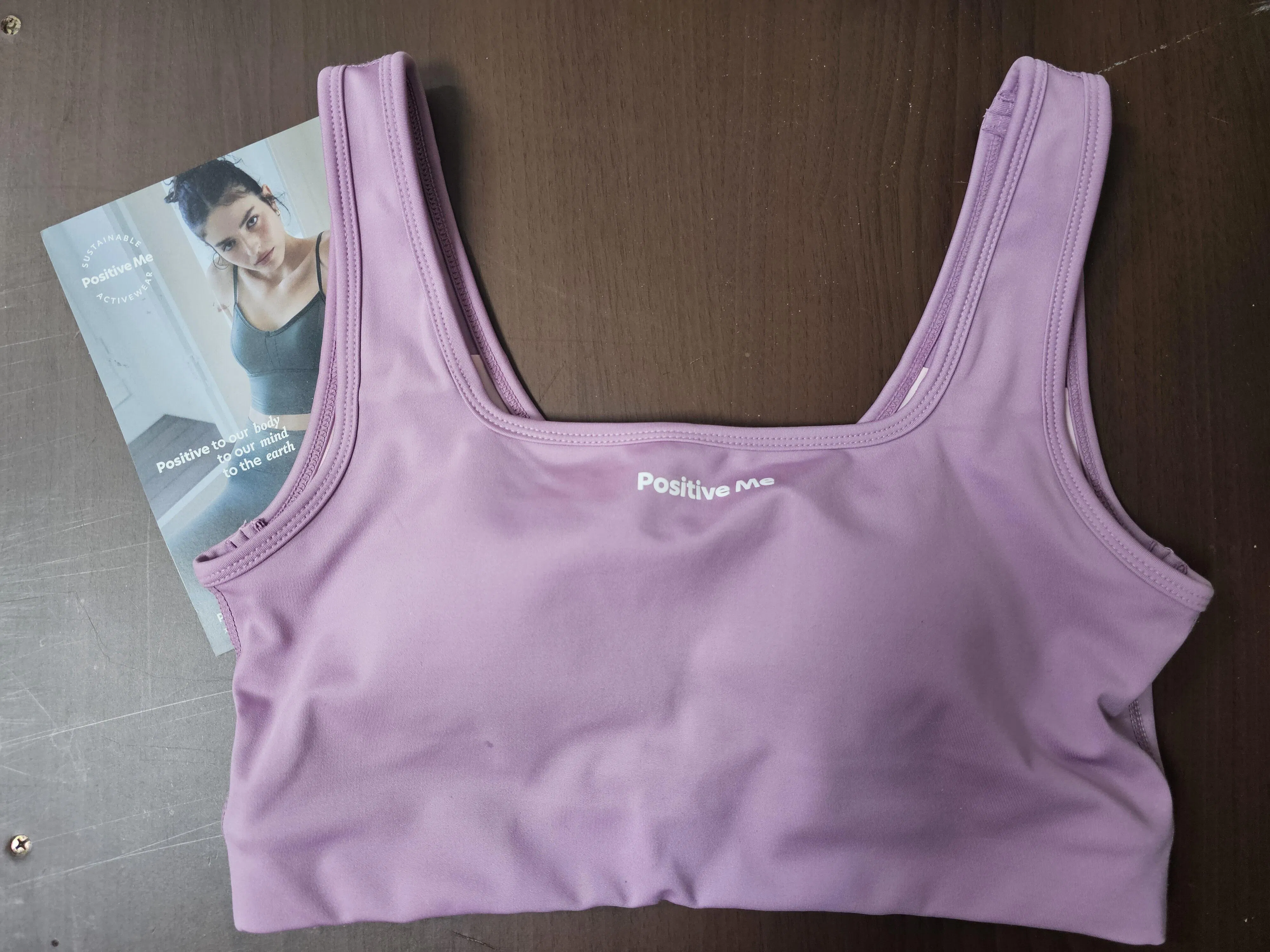 The interior includes space for removable pads, so you can customize your support level, and the eco-friendly Positive Me logo print completes the piece.