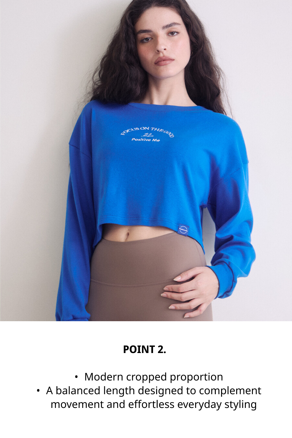 The Clarté Organic Cropped Long Sleeve is designed for those moments after your workout when you want to stay comfortable and effortlessly stylish. Crafted from 100% organic cotton, it feels soft, breathable, and gentle on the skin — perfect for all-day wear without irritation.